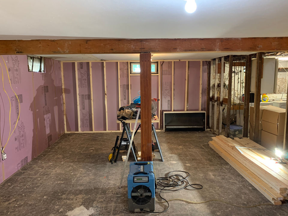 After remediation was completed, The Property Source took this unfinished basement and turned it into a comfortable office/living for our client. From framing and rough-in MEP trades, to finish trim carpentry, painting, flooring, and fixtures, a tremendous amount of detail was taken into every consideration to allow for a great finish product.